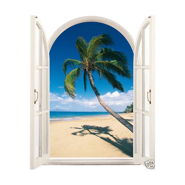 Avec ce sticker, votre fenêtre vous emmène sur une île paradisiaque... Un palmier sur une plage de sable fin, une mer limpide. Le rêve à portée de sticker...
