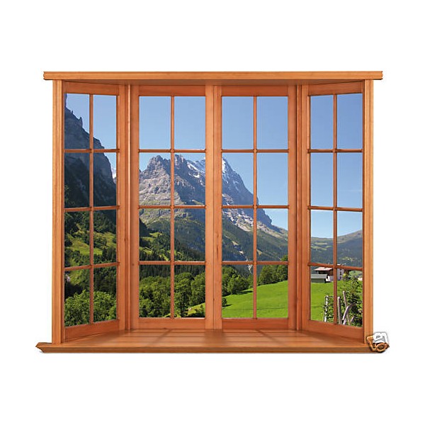 Sticker trompe l'oeil fenêtre vue sur montagne
