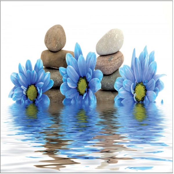 Sticker pour lave vaisselle déco fleurs bleus 60 x 60 cm.